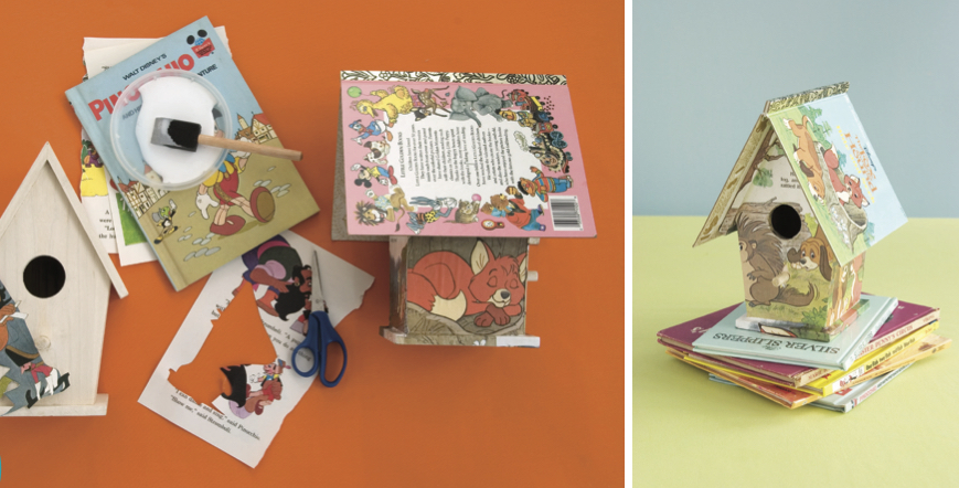 Here’s an oldie-but-goodie craft from one of my books, “Simply Green Parties,” that remains a timeless favorite. It’s a storybook birdhouse.
